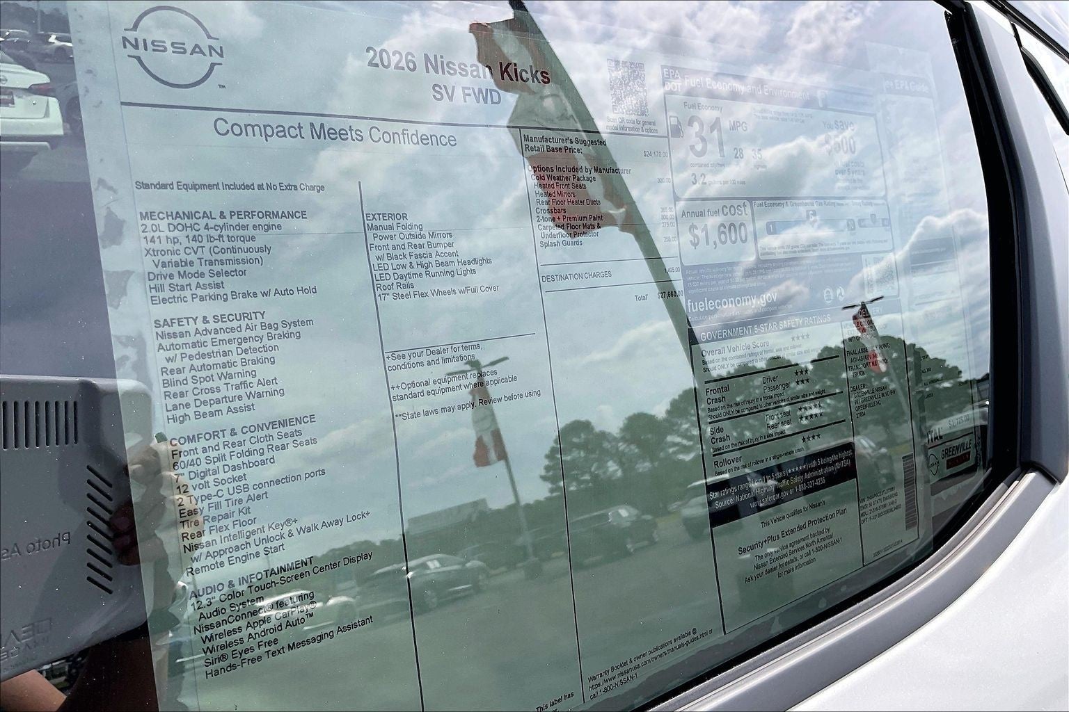 All prices, specifications, and availability are subject to change without notice. Contact dealer for current details. Pricing applies to in-stock units only and includes applicable dealer fees, discounts, and manufacturer incentives. Some offers require financing through NMAC with approved credit; alternative financing may affect eligibility. Due to inventory and market conditions, select vehicles may include a market adjustment. Pricing reflects all applicable incentives and may not be combined with other offers. Most new vehicles may include the Drive to Serve Protection Package, featuring dealer-installed products: 1-Year Prepaid Maintenance, Free NC State Inspections, ResistAll 360 ($755), Windshield Protection ($775), and Wheel Locks ($195, where applicable). These are not factory-installed and are added by Greenville Nissan. Dealer addendum pricing is separate from advertised price and excludes tax, title, license, registration, and dealer fees. See dealer for full details.
