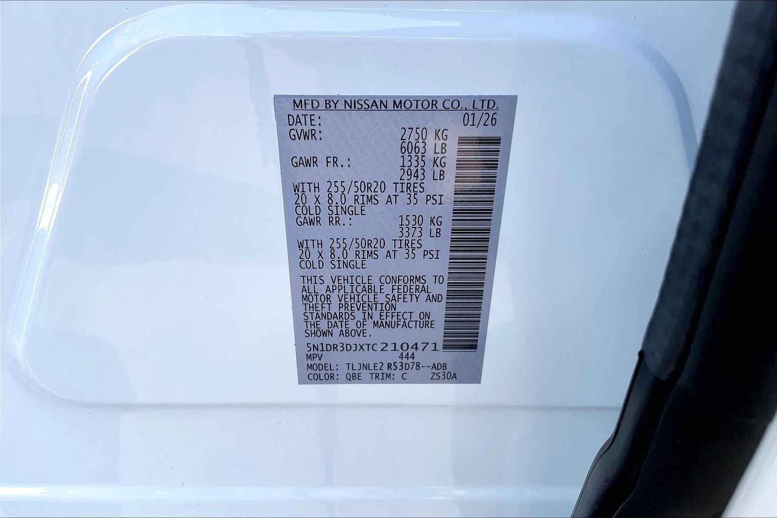 - Tires: P255/50R20 All-Season