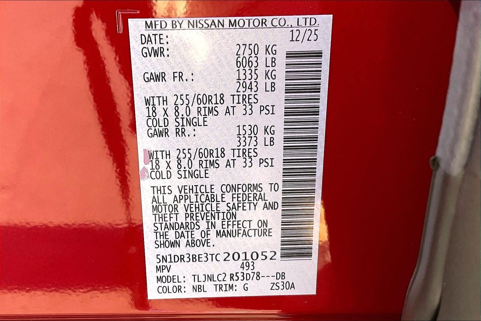 - Tires: P255/60R18 All-Season