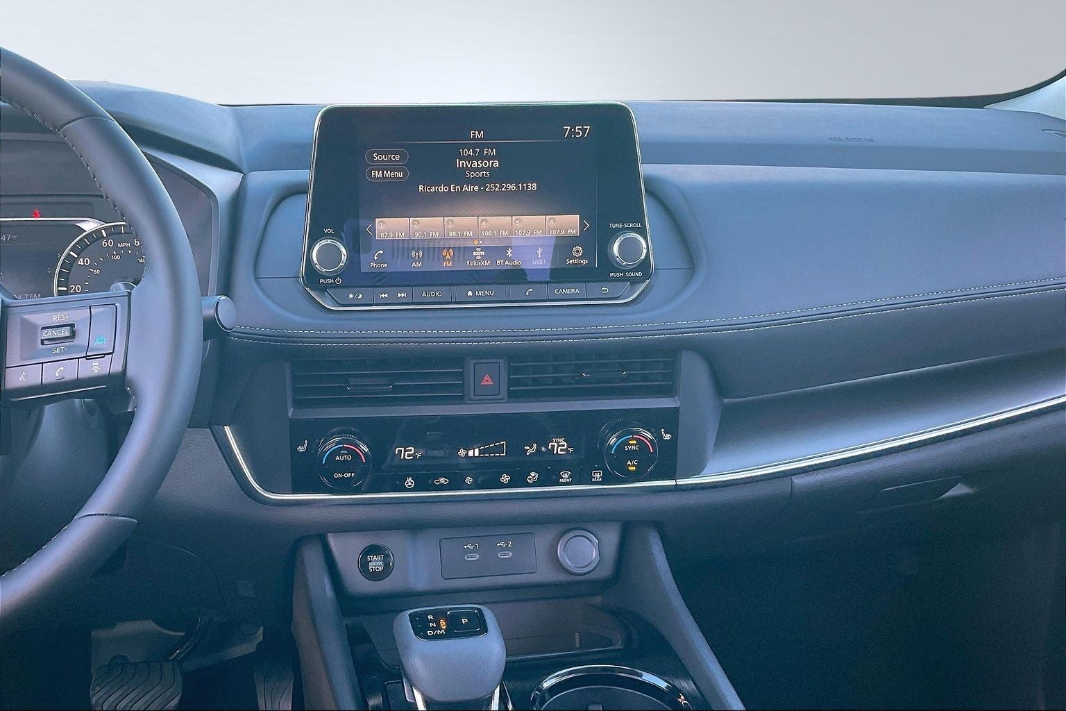 - Radio: AM/FM NissanConnect -inc: 6 speakers plus 2 tweeters, Apple CarPlay, Android Auto, 8" color touch screen display, Bluetooth®, 2 front USB type-C, Wi-Fi hotspot and NissanConnect Services powered by SiriusXM