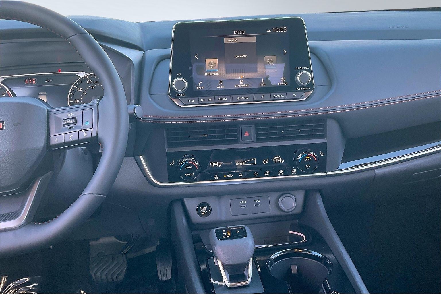 - Radio: AM/FM NissanConnect -inc: 6 speakers plus 2 tweeters, Apple CarPlay, Android Auto, 8" color touch screen display, Bluetooth®, 2 front USB type-C, Wi-Fi hotspot and NissanConnect Services powered by SiriusXM