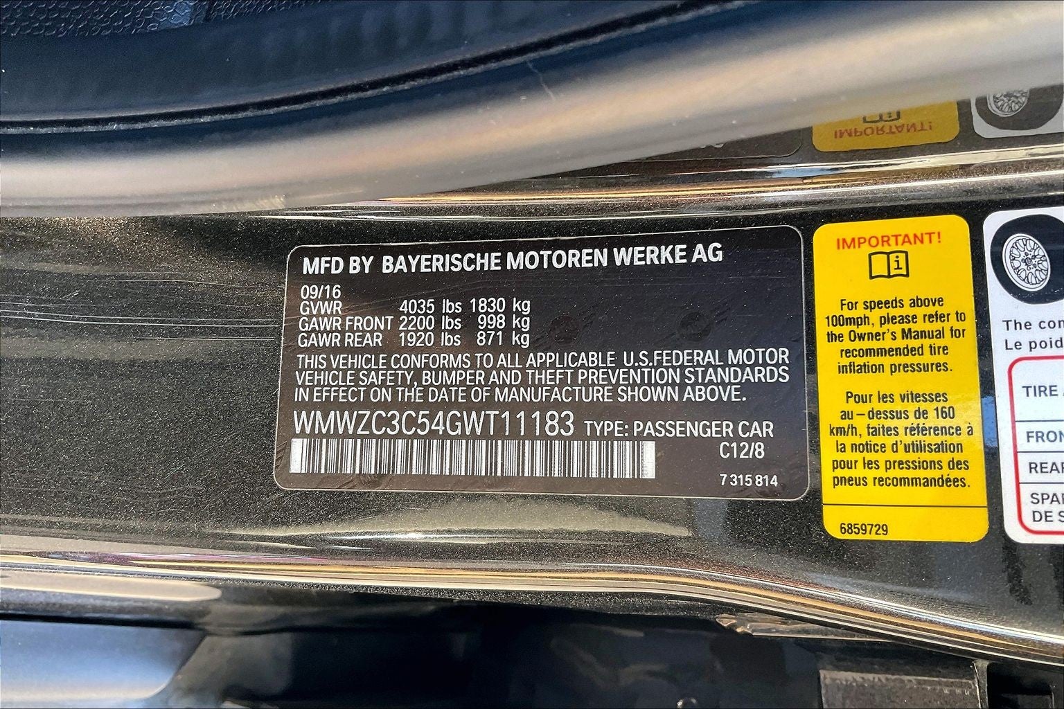 - Rear Tire Order Code: 927