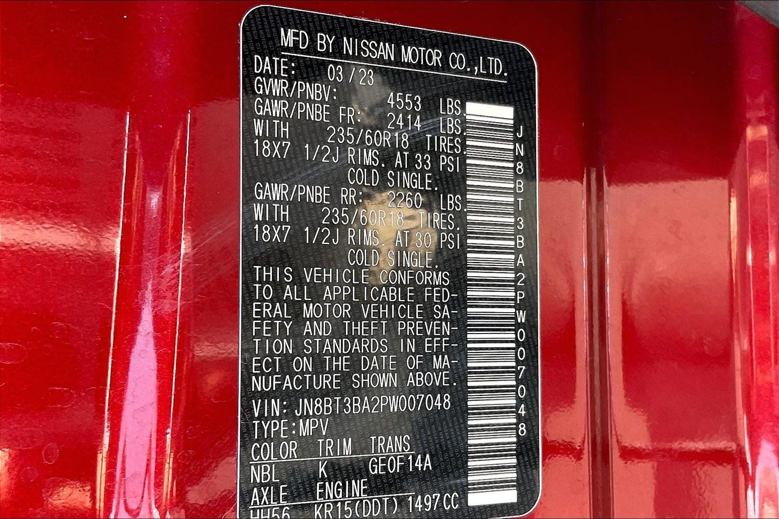 SCARLET EMBER TINTCOAT, LIGHT GRAY, SEAT TRIM, [C03] 50 STATE EMISSIONS, [B93] CHROME REAR BUMPER PROTECTOR, [B92] BLACK SPLASH GUARDS (SET OF 4), [N94] FRAMELESS REARVIEW MIRROR W/UNIVERSAL REMOTE, [N92] ILLUMINATED KICK PLATES, [L92] FLOOR MATS W/1-PIECE CARGO AREA PROTECTOR, [H92] USB CHARGING CABLE SET - NISSAN